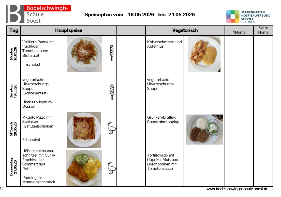 Speiseplan vom 18. Mai bis 21. Mai 2026