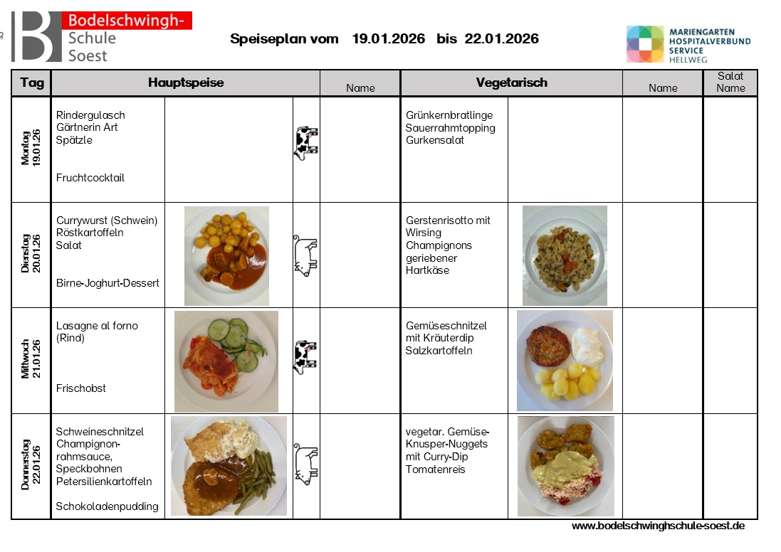 Speiseplan vom 19. Januar bis 22. Januar 2026