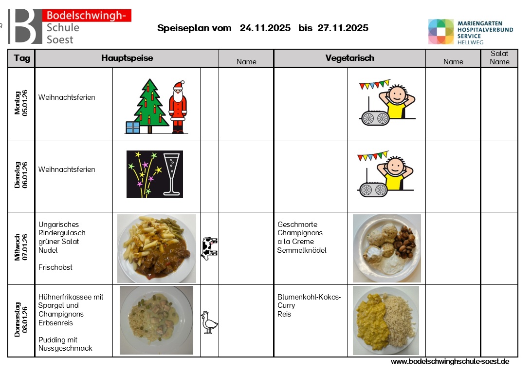 Speiseplan vom 05. Januar bis 08. Januar 2026