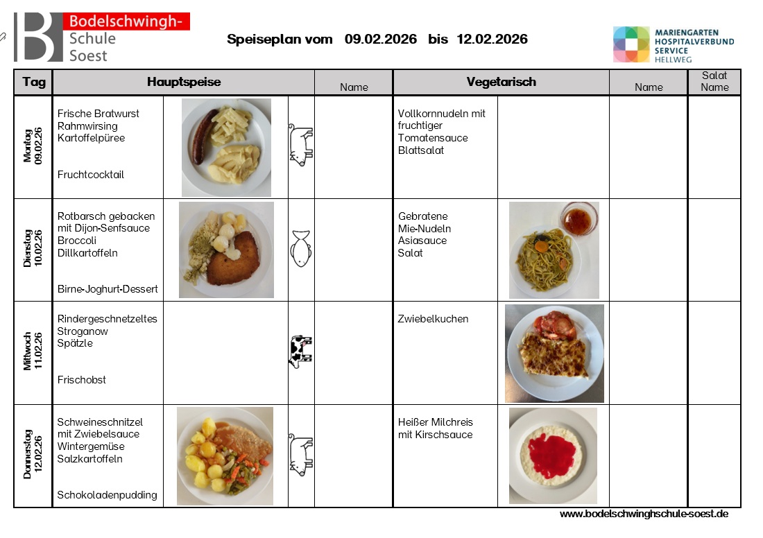 Speiseplan vom 09. Februar bis 12. Februar 2026